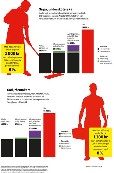 - Kompensation för hårt arbete! Är du borta från ditt arbete på grund av sjukdom, föräldraskap eller arbetslöshet ska din pension baseras på din lön och inte din tillfälliga ersättning. Alla har rätt till en trygg pension, även vi som har tunga jobb.
