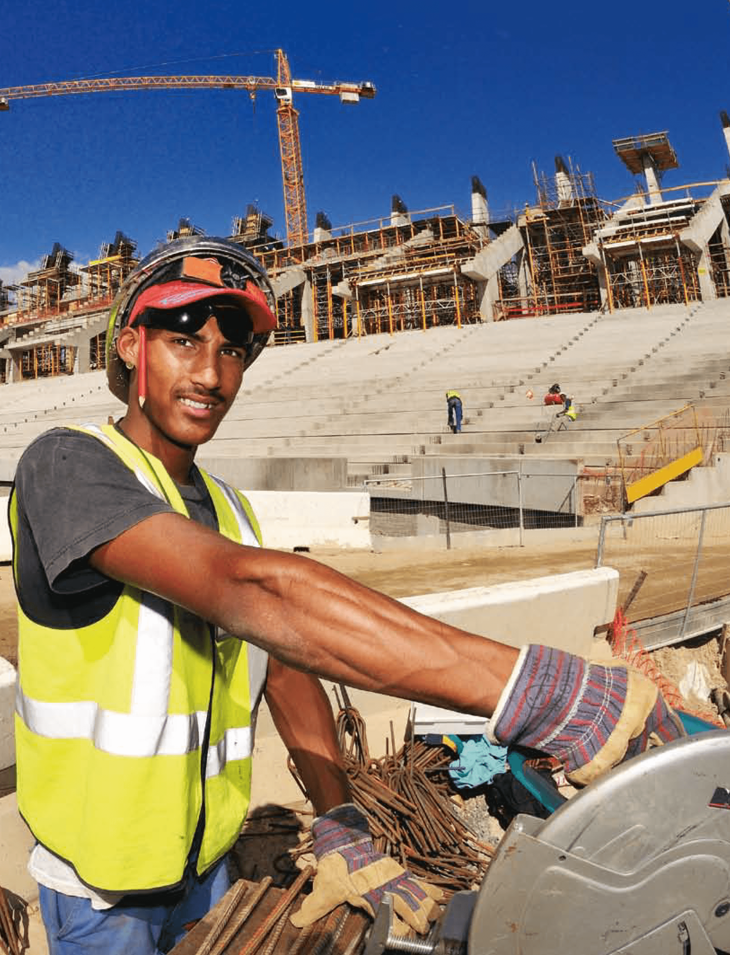 Hur ser livet och arbetsvillkoren ut för de tusentals byggnadsarbetare som byggt de stora sportevenemangens arenor?