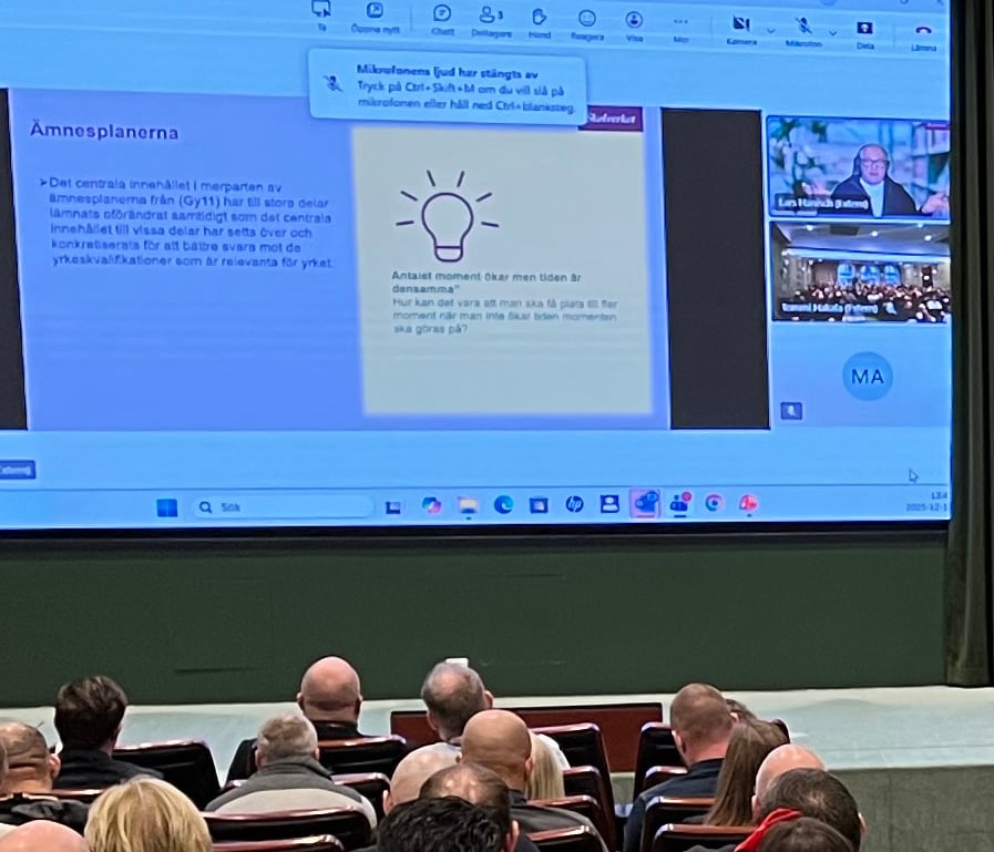 Lars Hanisch, utbildningsråd på Skolverket, inledde på länk med att prata om Gy25 som infördes 1 juli i år. Med sin bakgrund som bygglärare har han en väldigt bra kunskap om yrkeslärares arbetssituation. Gy25 innebär en förändring i betygsättningen eftersom man går från kursbetyg till ämnesbetyg. Ambitionen är att man med en sammantagen bedömning och mindre detaljerade betygskriterier åter ska få undervisning och lärande i fokus. Tyngden i lärarnas arbete med eleverna ska ligga på undervisning och lärande vilket låter väldigt positivt. Ett nytt system kan alltid vara en liten utmaning att införa så Lars kom med råd och tips om hur det nya systemet kan tillämpas. För att pricka rätt och prata om det som lärarna undrade över hade lärarnätverket i norra Skåne skickat frågor till Lars i förväg.